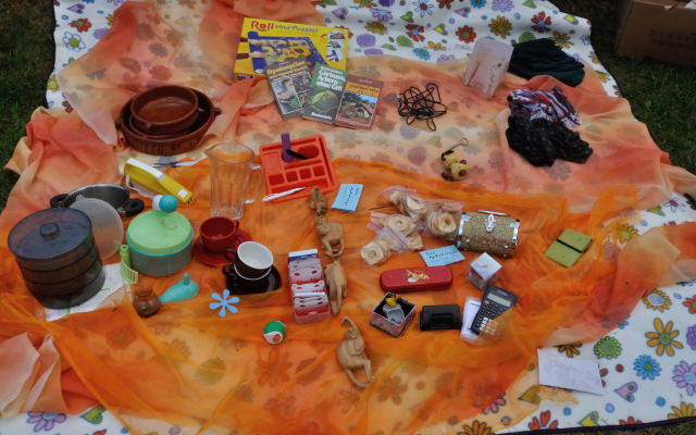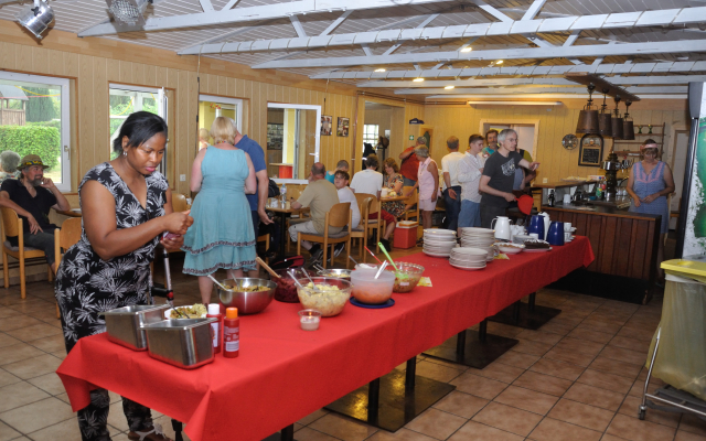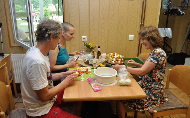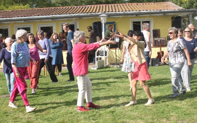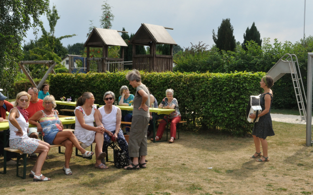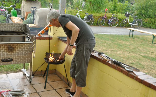Gemütliches Beisammensein mit Speisen, Getränken, angeregten Gesprächen und Hängematten-Experimenten.